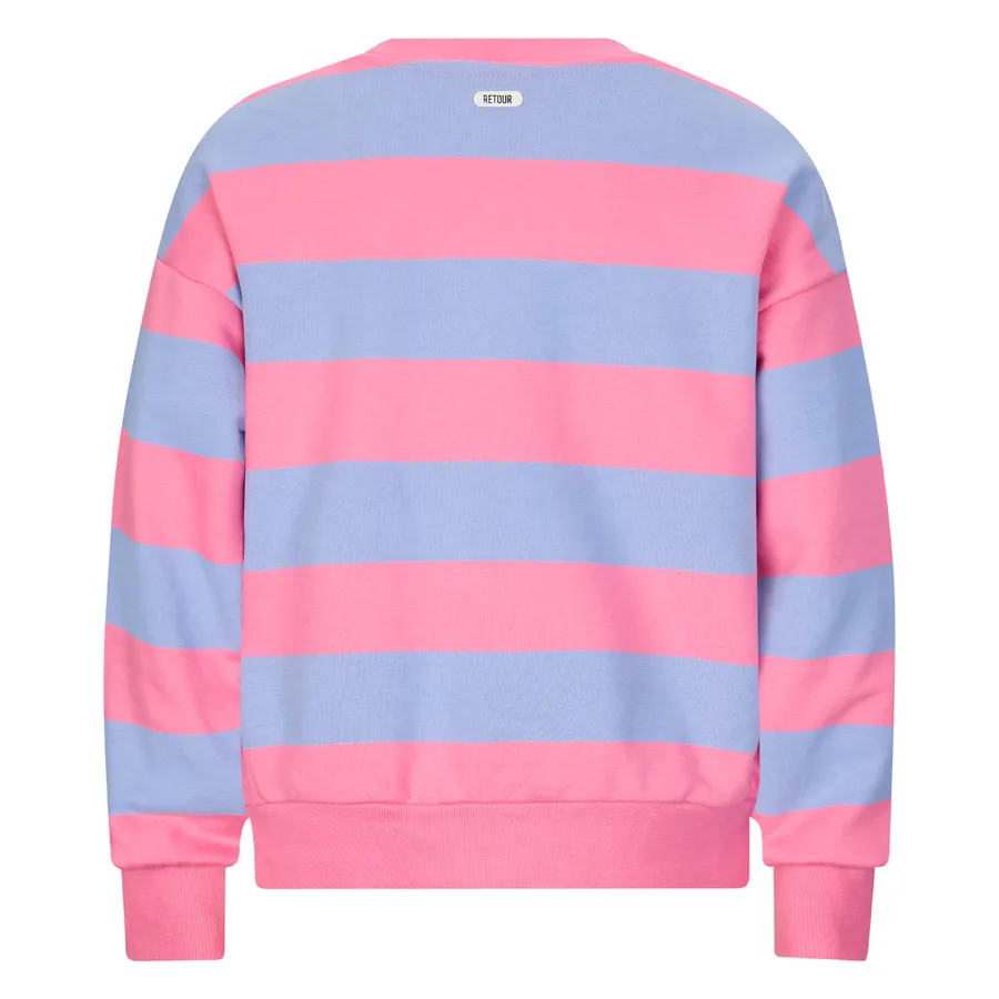 Sweater uit de zomercollectie van Retour Jeans met een loose fit. De sweater heeft een geribde boord rond de hals, aan de onderkant en onder aan de mouwen.