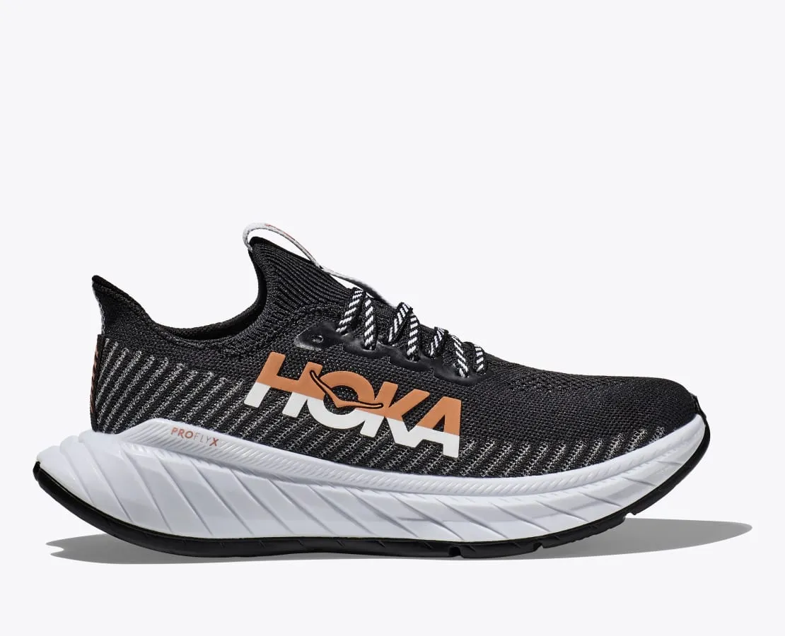 De nieuwe Carbon X 3 schiet uit de startblokken met een gloednieuw bovenstuk. En dankzij de actieve nieuwe foam middenzool biedt hij een loopervaring met een nog krachtigere afzet dan zijn voorganger. De duurloopschoen is in deze nieuwe variant uitgevoerd met een hoogwaardige, prestatiegerichte tricotconstructie voor een betere pasvorm, en uitgerust met dezelfde responsieve carbonplaat en een robuuste Meta-Rocker. Deze prestatieschoen is een geduchte tegenstander voor de concurrentie. Hij is afgewerkt in een opvallende asymmetrische kleurstelling om in stijl over de finish te gaan.