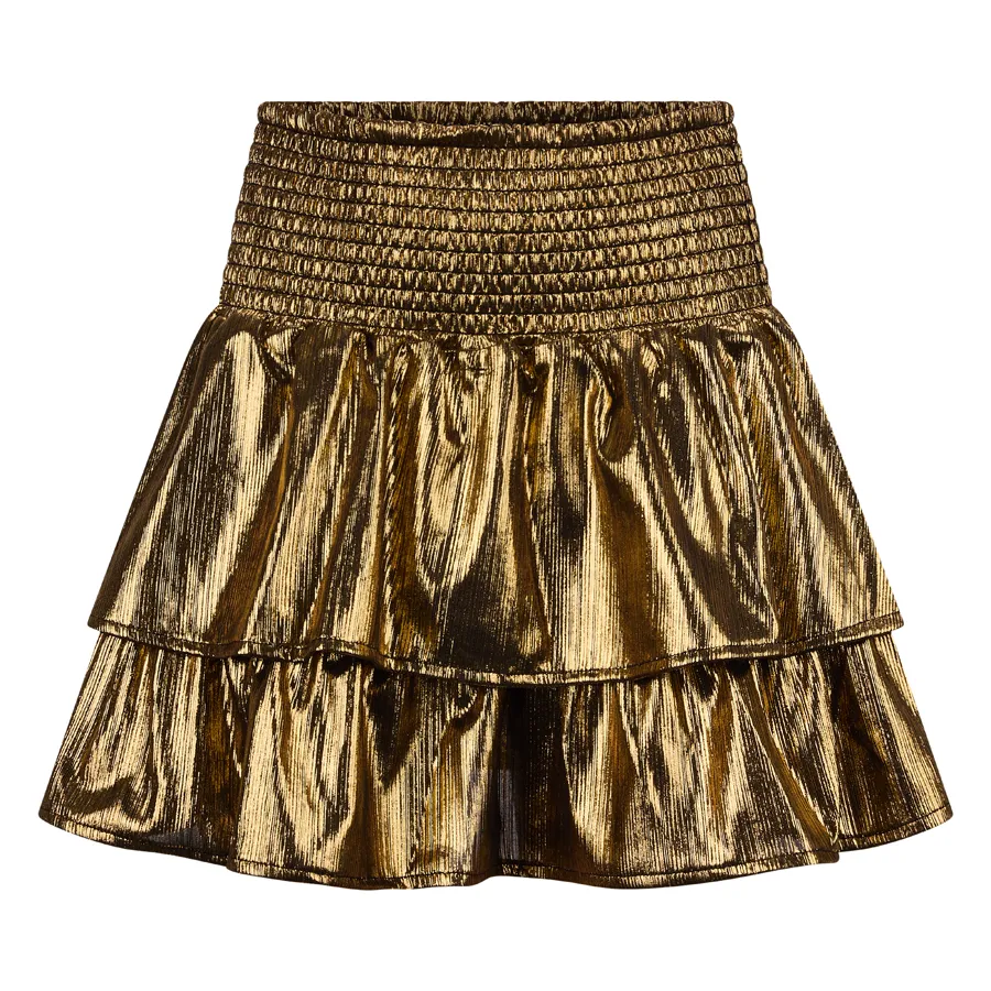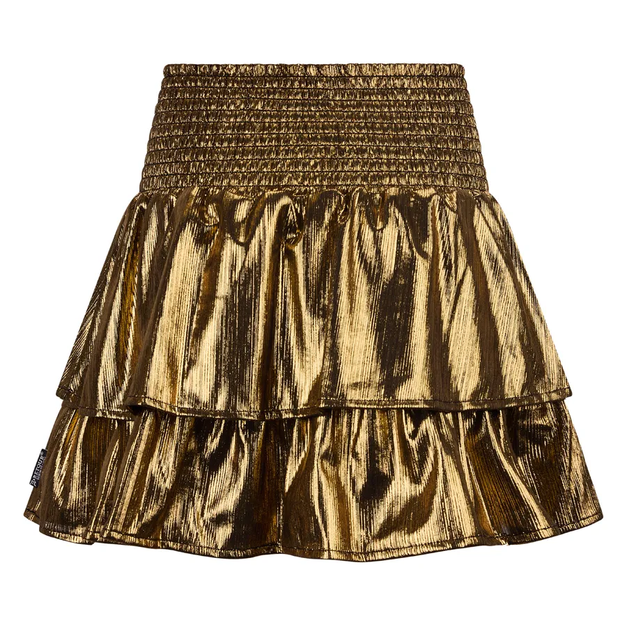 Metallic gouden strokenrokje uit de Flash wintercollectie van Retour Jeans met gesmokt breed elastiek in de taille.